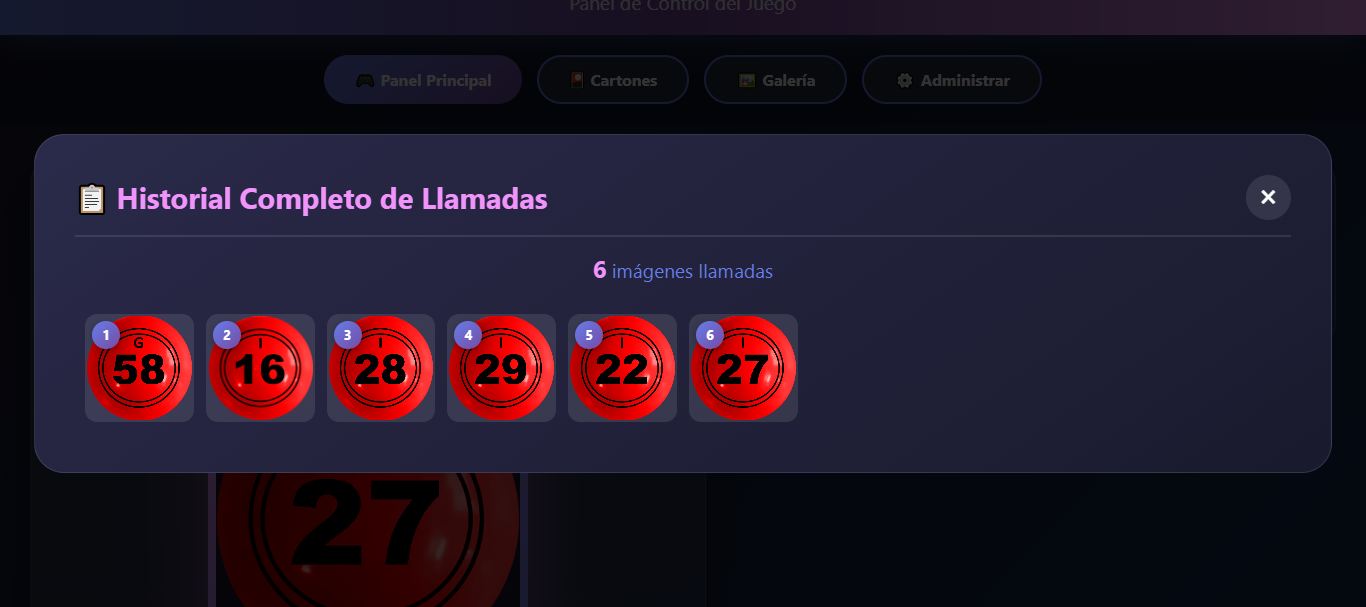 Se basa en llamar una imagen de manera aleatoria y solo sirve para jugar cartón lleno, no existen cartones predeterminados, siempre que generas cartones , genera diferentes.